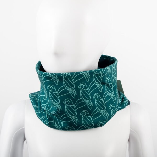 Dětský oboustranný nákrčník – papoušci na zelené